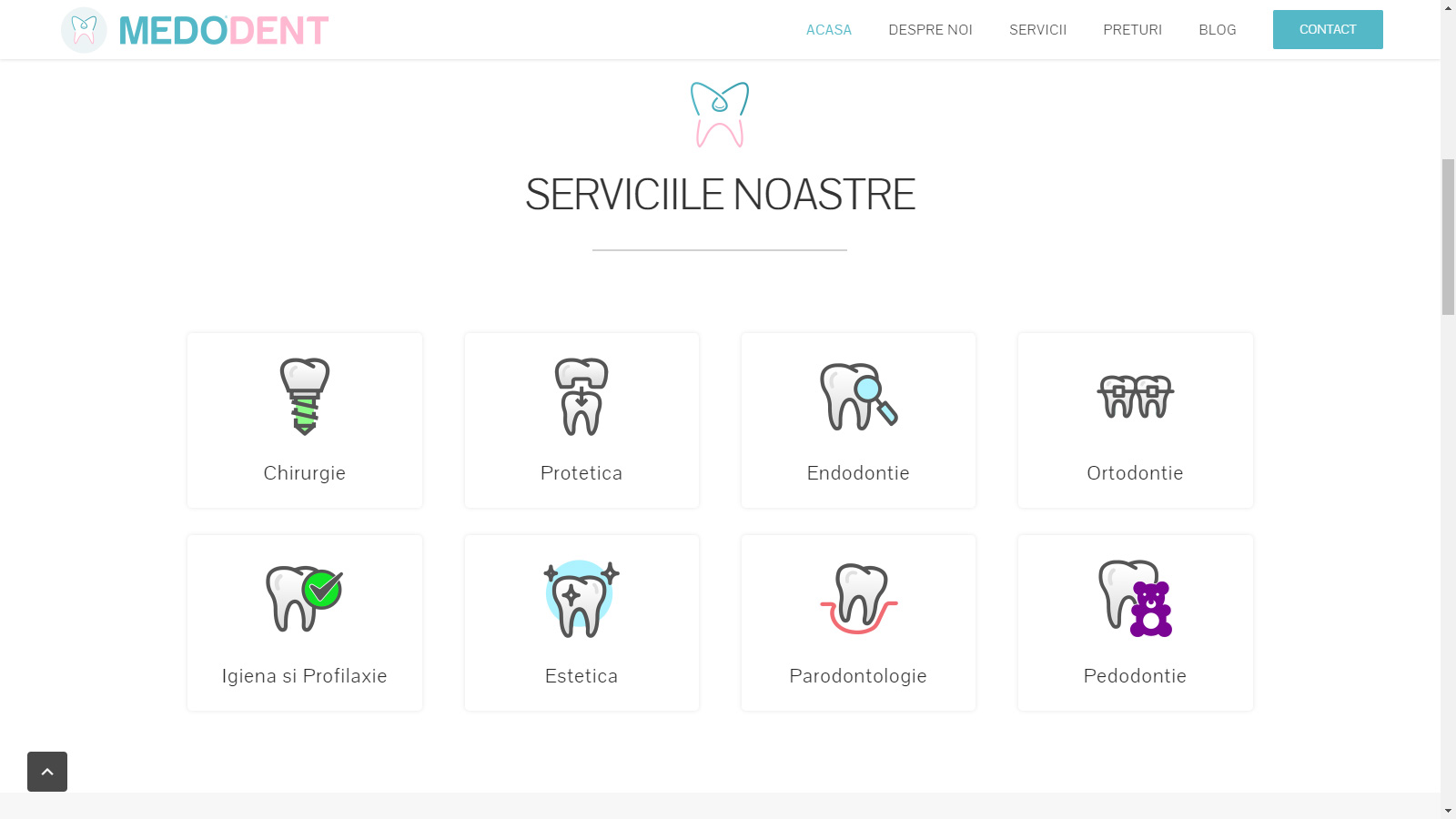 A simple website for a private dental clinic. Custom graphics for each of the specialties.